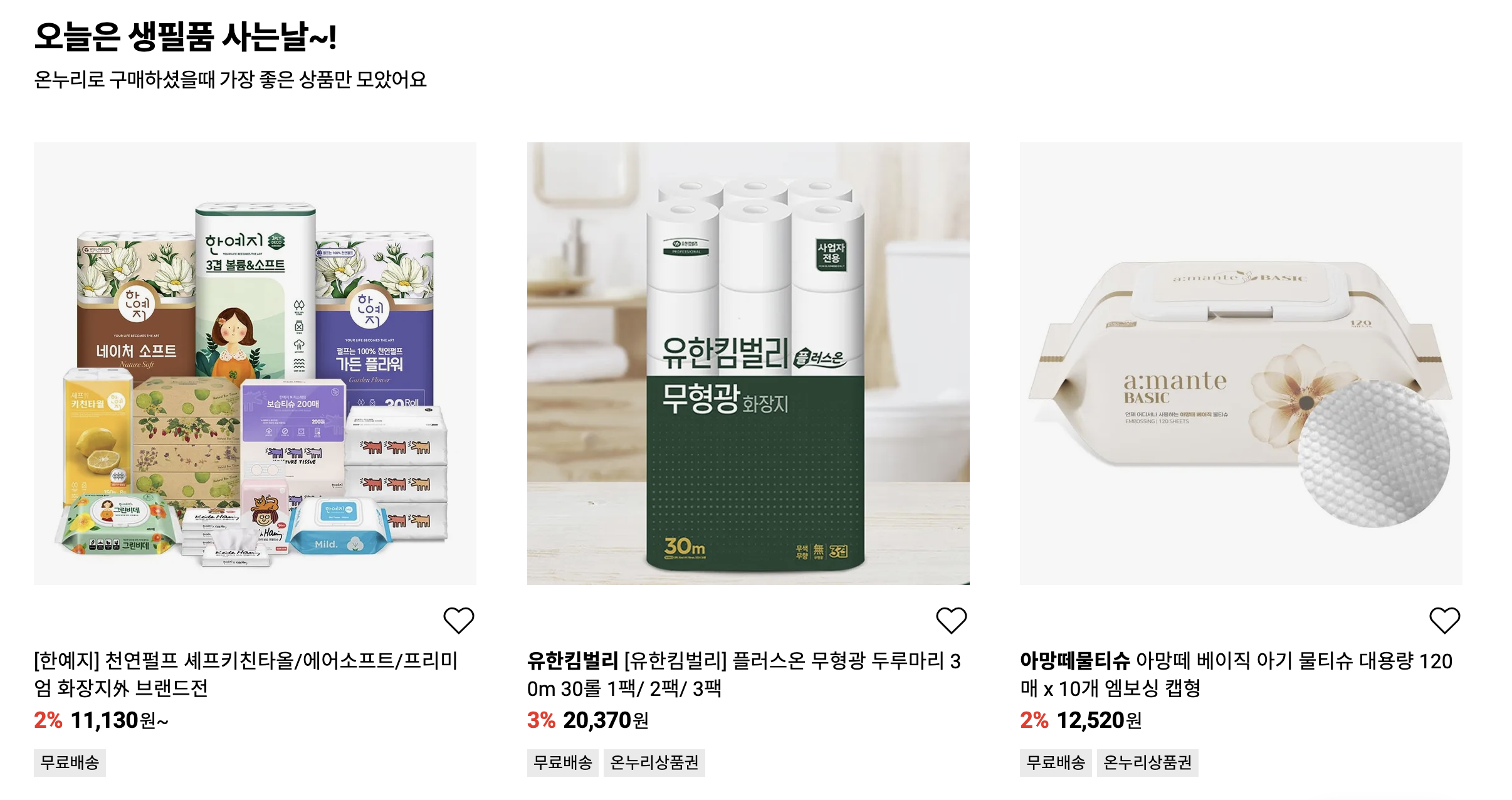 휴지와 물티슈는 미리미리 구매해두어도 상관 없는 생필품이라 온누리상품권으로
