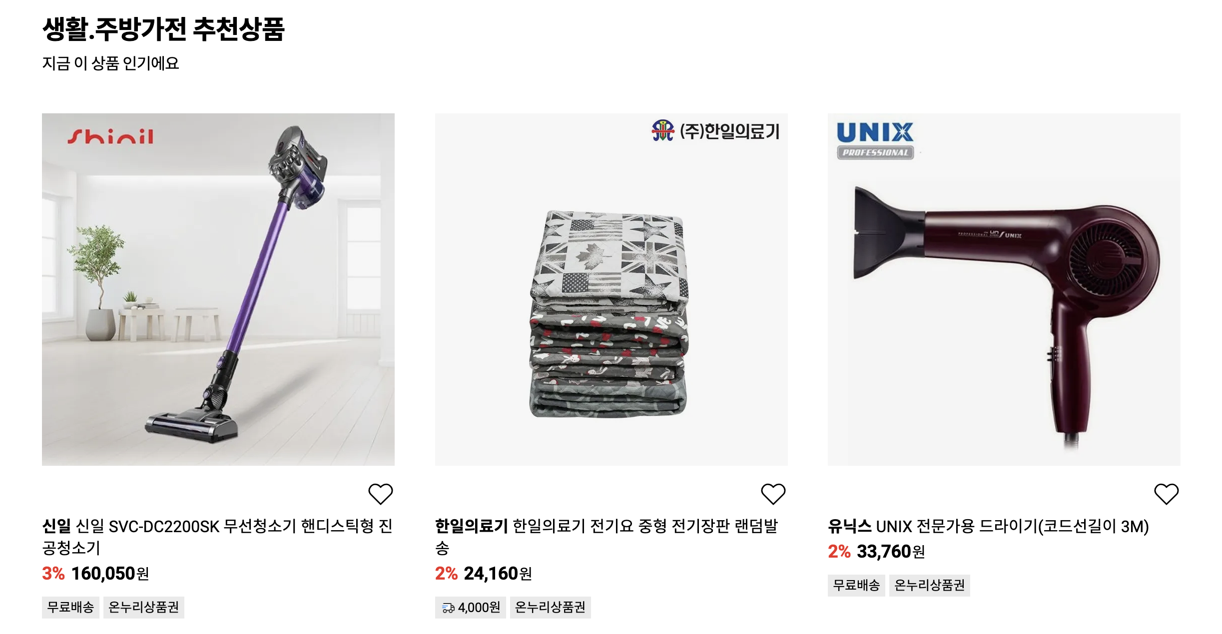 청소기, 전기장판, 드라이기 같은 필수 가전 제품도 구매할 수 있습니다. 너무 좋지 않나요?